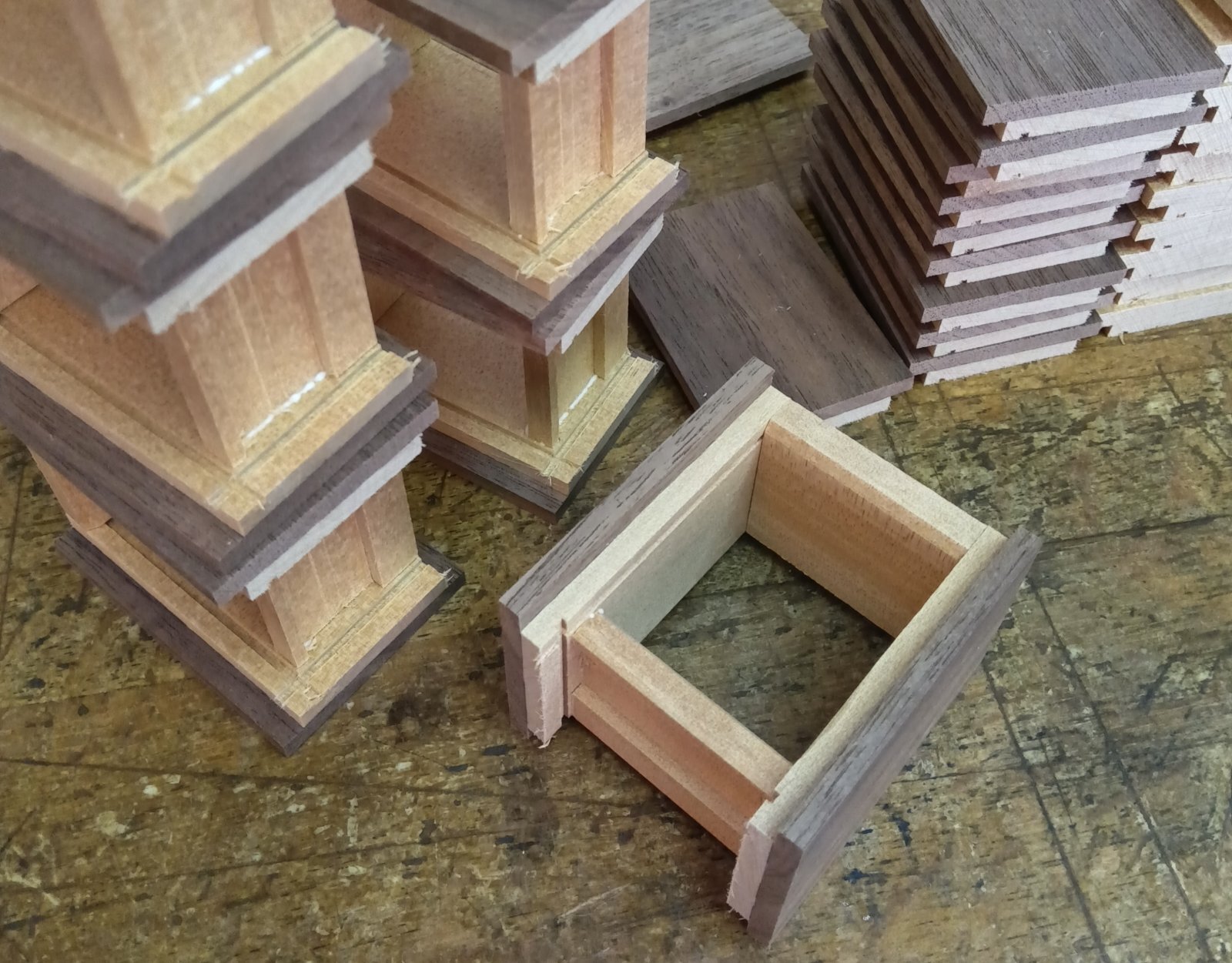 Today, I’m working on several tasks at once, as usual, and I’ve also started assembling the 2-sun box. It’s a 7-step mechanism, so it uses a single Kannuki (slide key) panel on one side.