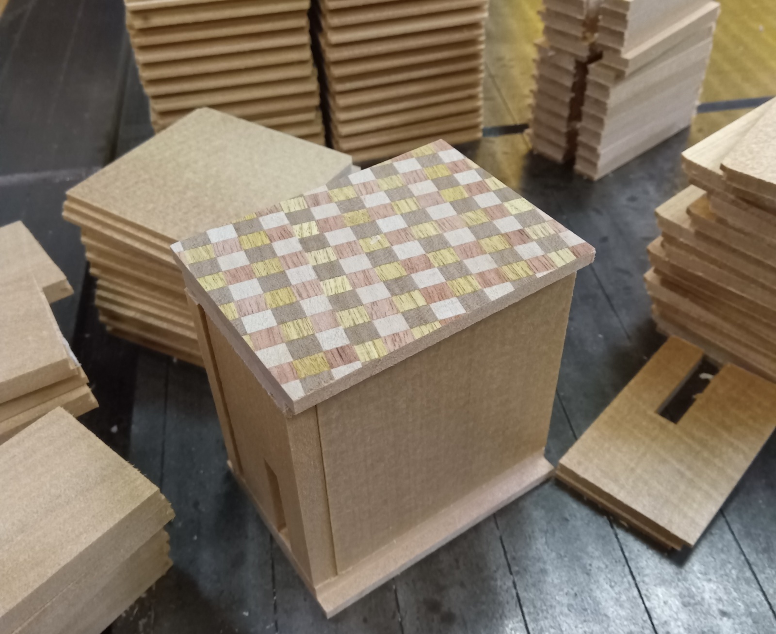 For this 18-steps version, the thickness of the Aruki panels is the same as that of the 14-steps and 12-steps versions. Because the panels are thinner than those used in the 27-steps boxes, I need to pay extra attention to this balance. I made them in the same way this time as well.