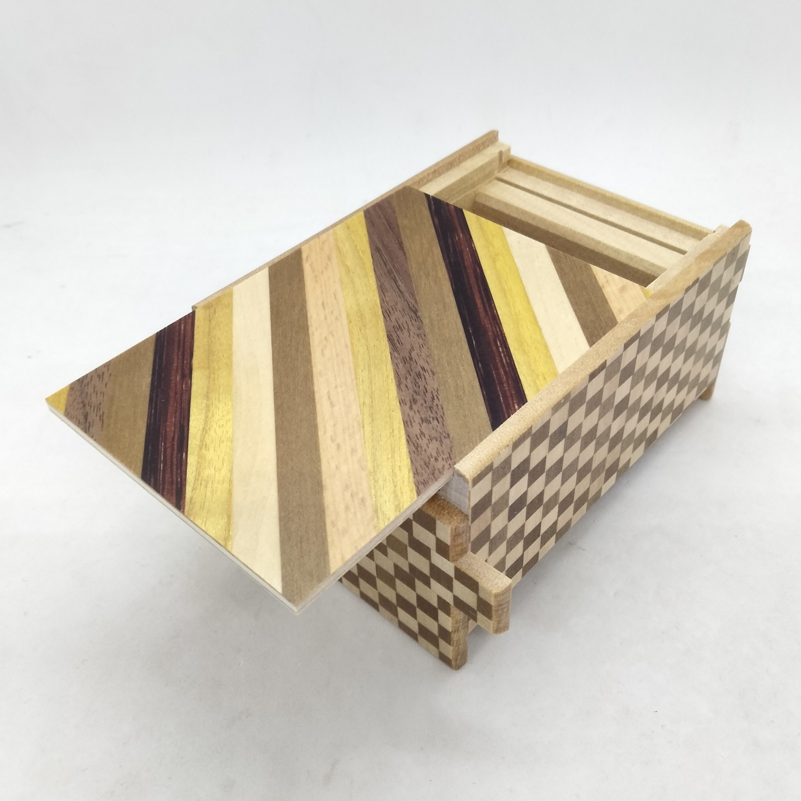 14 steps Striped pattern/Ichimatsu 4 sun Japanese puzzle box Himitsu-bako