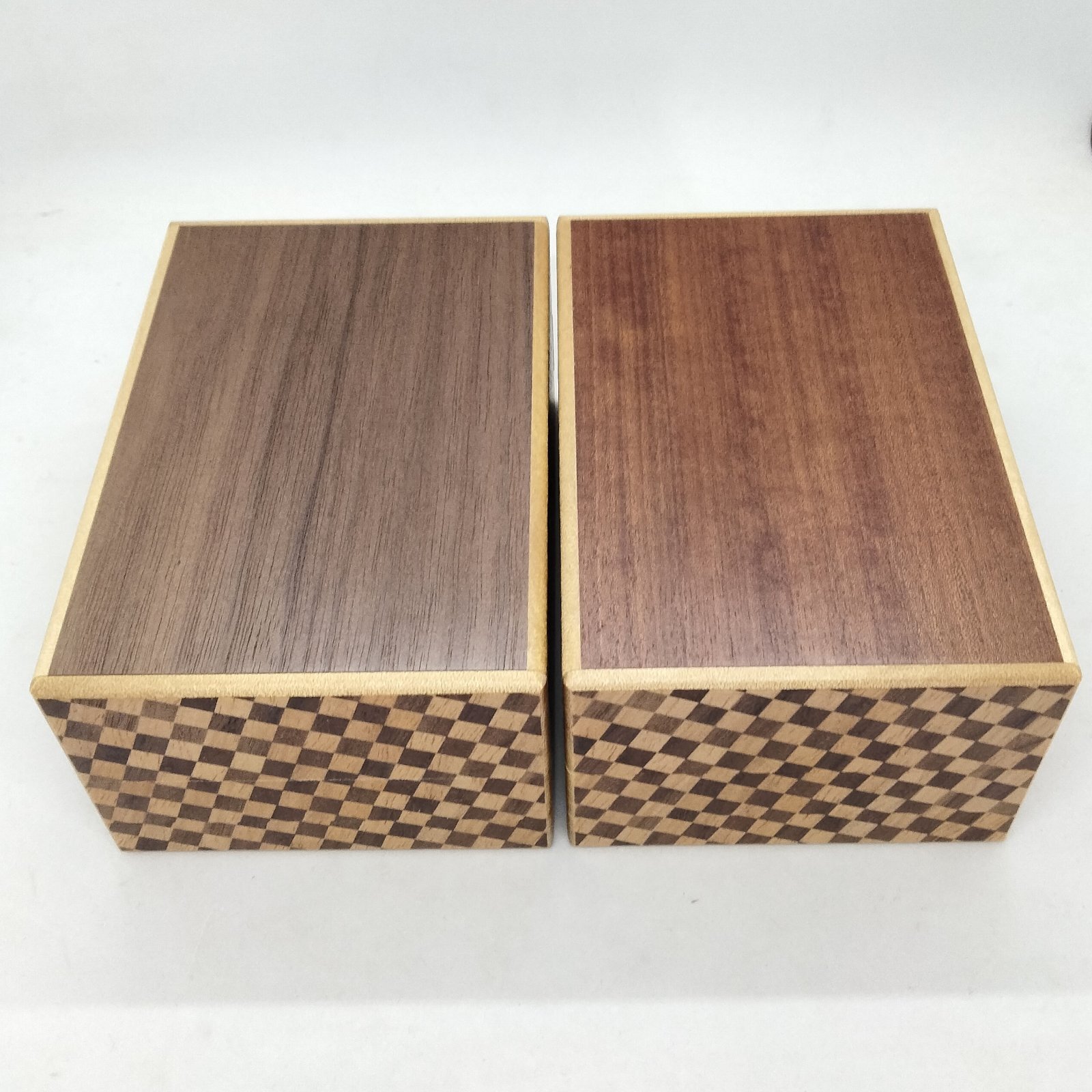 *The traditional yosegi pattern is different on each box, so it may not look exactly the same as in the photo. The traditional yosegi is used only on the top panel. The bottom panel is made with either sliced walnut wood or makore wood (you cannot choose which one). The side panels are made with checkered yosegi.